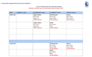 Y11 Easter Revision Timetable